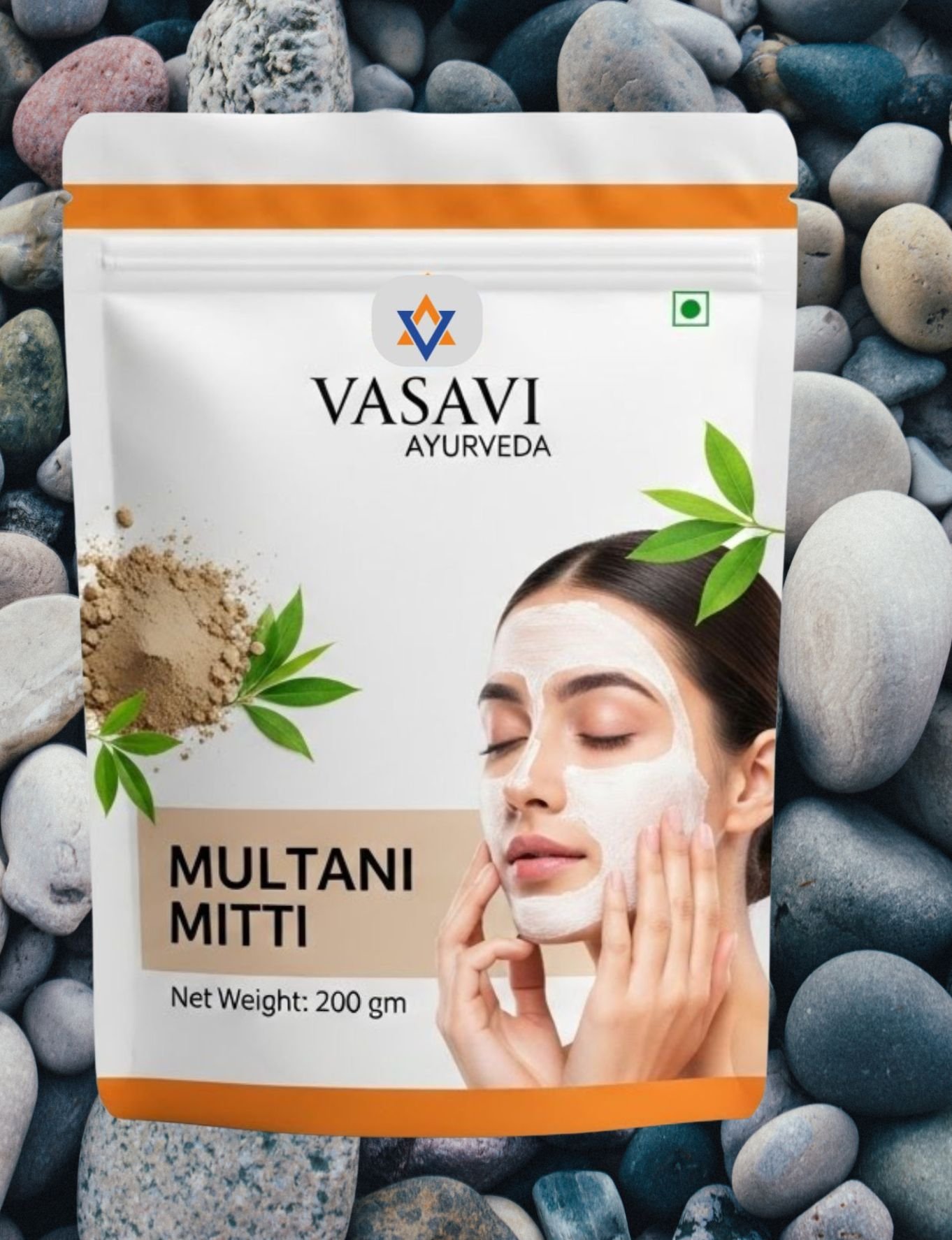Experience naturally clear and refreshed skin with Vasavi Ayurveda Multani Mitti Powder, a pure and natural form of Fuller’s Earth traditionally used in Ayurvedic skincare. Known for its excellent oil-absorbing and cleansing properties, Multani Mitti helps remove excess oil, dirt, and impurities from deep within the pores.